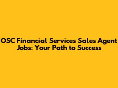 OSC Financial Services Sales Agent Jobs: Your Path To Success