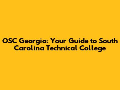 OSC Georgia: Your Guide To South Carolina Technical College