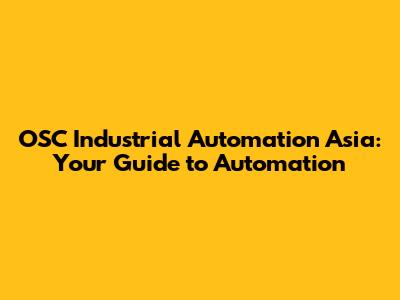 What is OSC Industrial Automation Asia? Unveiling Automation Solutions