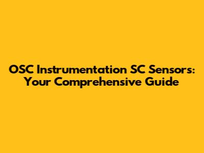 OSC Instrumentation SC Sensors: Your Comprehensive Guide
