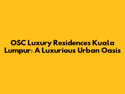 Hey there, real estate enthusiasts! Let's dive into something truly special: OSC Luxury Residences in Kuala Lumpur. If you're on the hunt for a slice of paradise in the heart of a vibrant city, then you've absolutely come to the right place. These residences aren't just about four walls and a roof; they're about a lifestyle. We're talking about an experience that combines elegance, comfort, and unparalleled convenience. Kuala Lumpur, or KL as the cool kids call it, is a city that never sleeps, offering a dynamic mix of culture, cuisine, and commerce. And OSC Luxury Residences are perfectly positioned to let you soak it all in. Ready to explore what makes these residences the talk of the town? Let's get started!