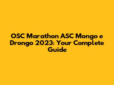 OSC Marathon ASC Mongo E Drongo 2023: Your Complete Guide