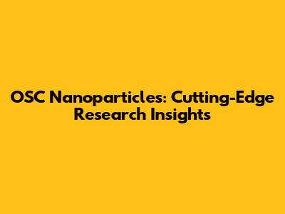 OSC Nanoparticles: Cutting-Edge Research Insights