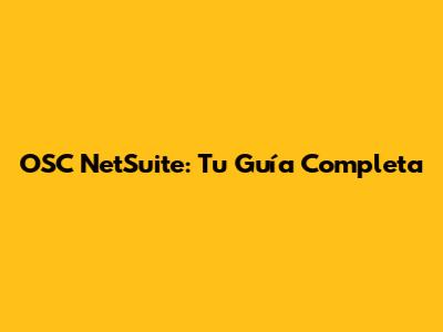 OSC NetSuite: Tu Guía Completa