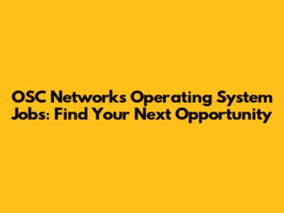OSC Networks OS Jobs: Find Your Next Opportunity