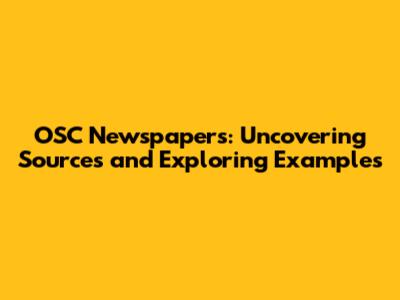OSC Newspapers: Uncovering Sources And Exploring Examples