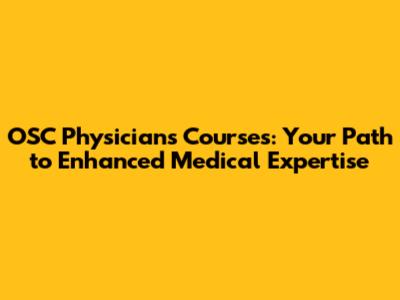 OSC Physicians Courses: Your Path To Enhanced Medical Expertise