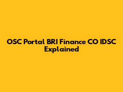 OSC Portal BRI Finance: CO IDSC Explained