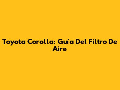Toyota Corolla: Guía Del Filtro De Aire