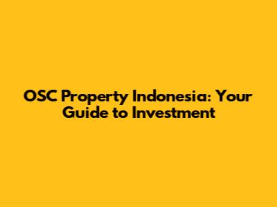 OSC Property Indonesia: Your Guide To Investment