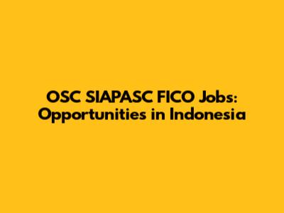OSC SIAPASC FICO Jobs: Opportunities In Indonesia