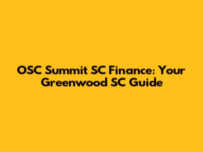 OSC Summit SC Finance: Your Greenwood SC Guide