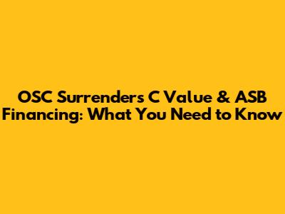 OSC Surrenders C Value & ASB Financing: What You Need To Know