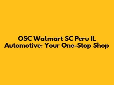 Okay, let's break this down. When we say "OSC Walmart SC Peru IL," we're essentially talking about a specific Walmart Supercenter located in Peru, Illinois, that also houses an Auto Care Center (ACC). Now, you might be thinking, "It's just a Walmart, what's the big deal?" But hold on a sec. The key here is the combination of a Supercenter and an Auto Care Center. This means you can tackle your grocery shopping, pick up household essentials, and get your car checked—all in one convenient location. Talk about killing two birds with one stone, right?