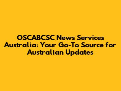 OSCABCSC News: Latest Updates From Australia