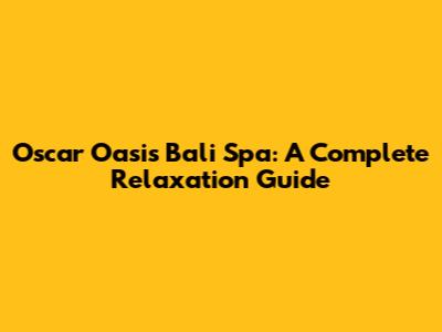 Oscar Oasis Bali Spa: A Complete Relaxation Guide