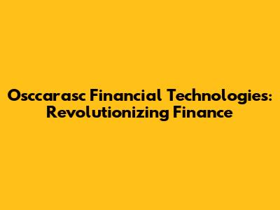 Osccarasc Financial Technologies: Revolutionizing Finance
