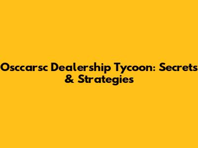 Osccarsc Dealership Tycoon: Secrets & Strategies