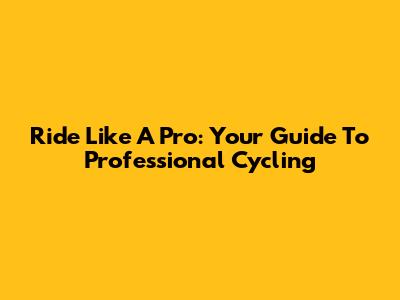 Ride Like A Pro: Your Guide To Professional Cycling