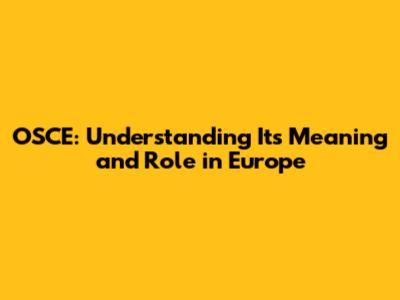 OSCE: Understanding Its Meaning And Role In Europe