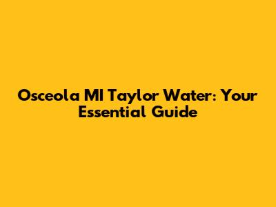 Osceola MI Taylor Water: Your Essential Guide