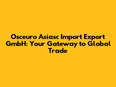 Osceuro Asiasc Import Export GmbH is a company that specializes in facilitating international trade. They act as intermediaries between buyers and sellers in different countries, handling all the complex logistics, regulations, and financial transactions involved in import and export. Think of them as your trusty guides in the complex world of international commerce!