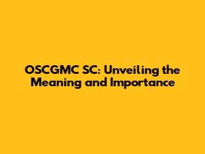 OSCGMC SC: Understanding The Acronym And Its Significance