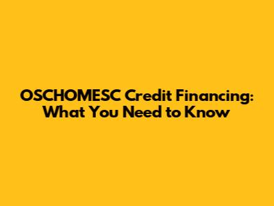 OSCHOMESC Credit Financing: What You Need To Know