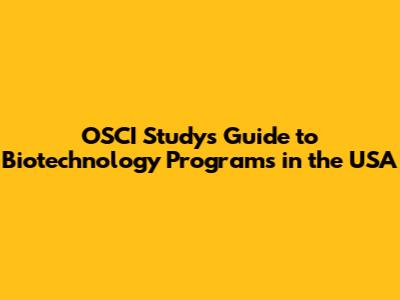 OSCI Study's Guide To Biotechnology Programs In The USA