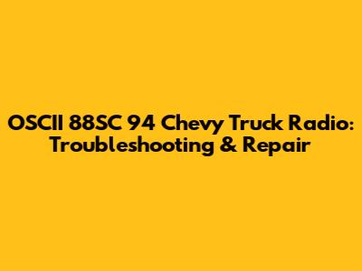 OSCII 88SC 94 Chevy Truck Radio: Troubleshooting & Repair
