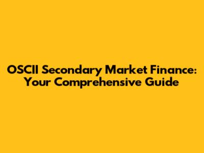 OSCII Secondary Market Finance: Your Comprehensive Guide