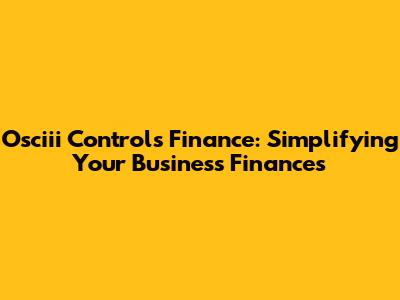 Osciii Controls Finance: Simplifying Your Business Finances