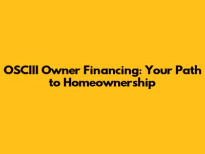 OSCIII Owner Financing: Your Path To Homeownership