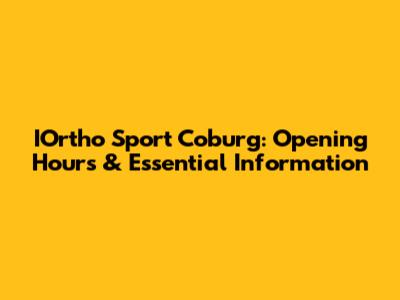 IOrtho Sport Coburg: Opening Hours & Essential Information