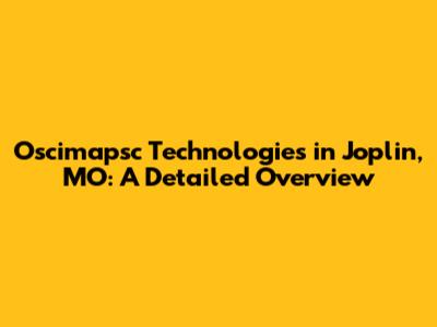 Oscimapsc Technologies In Joplin, MO: A Detailed Overview