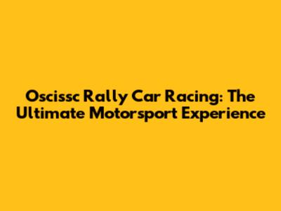 Oscissc Rally Car Racing: The Ultimate Motorsport Experience