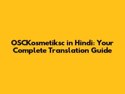 OSCKosmetiksc In Hindi: Your Complete Translation Guide