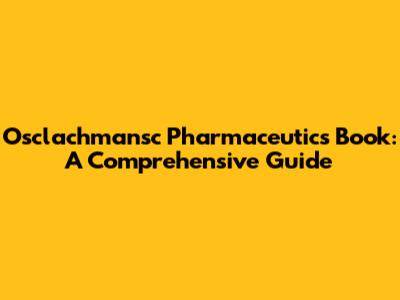 Osclachmansc Pharmaceutics Book: A Comprehensive Guide
