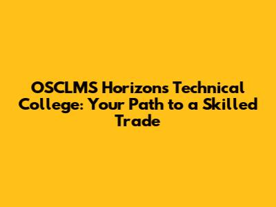 OSCLMS Horizons Technical College: Your Path To A Skilled Trade