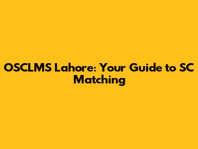 OSCLMS Lahore: Your Guide To SC Matching