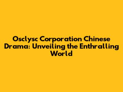 Osclysc Corporation Chinese Drama: A Complete Guide