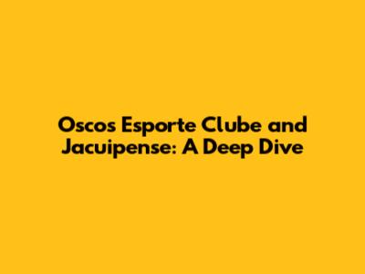 Oscos Esporte Clube And Jacuipense: A Deep Dive
