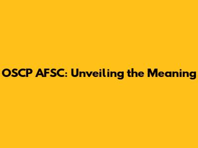 OSCP AFSC: What Does It Mean?
