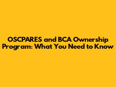OSCPARES And BCA Ownership Program: What You Need To Know