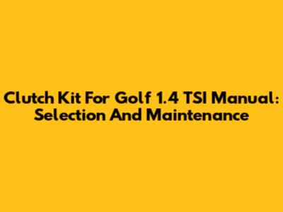 Clutch Kit For Golf 1.4 TSI Manual: Selection And Maintenance