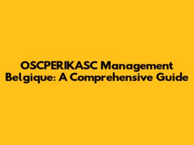 OSCPERIKASC Management In Belgium: Your Guide