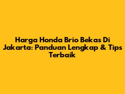 Harga Honda Brio Bekas Di Jakarta: Panduan Lengkap & Tips Terbaik