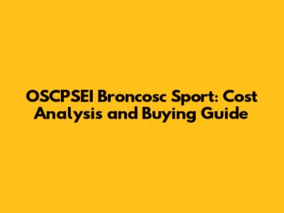 OSCPSEI Broncosc Sport: Cost Analysis And Buying Guide