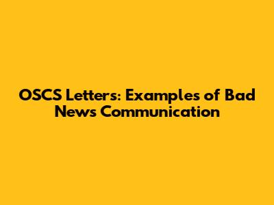OSCS Letters: Examples Of Bad News Communication