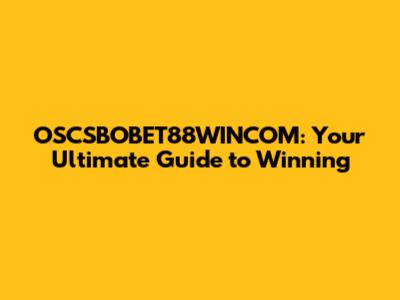 OSCSBOBET88WINCOM: Your Guide To Winning